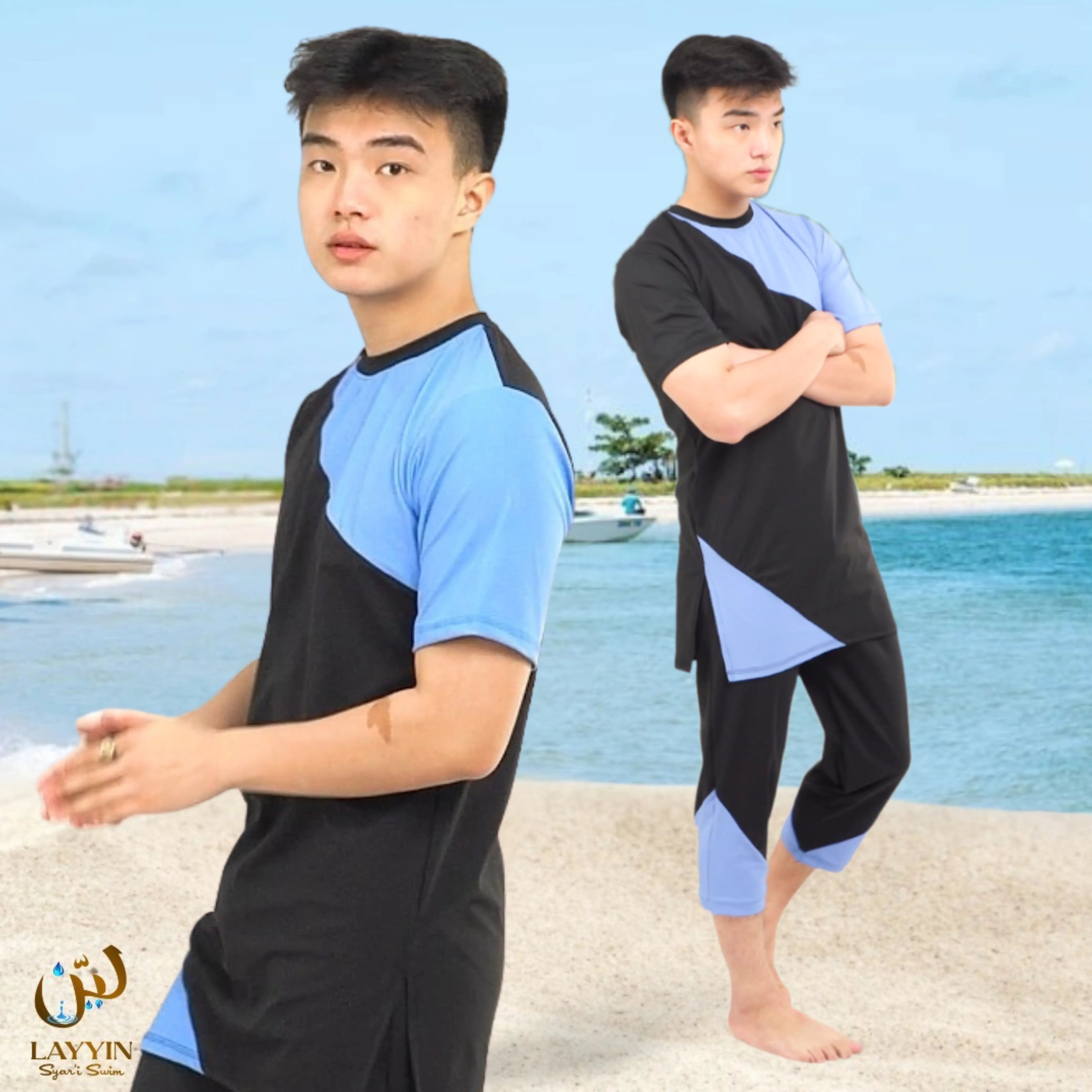 Modest Swimwear for Men | Blackwave Blue Trim