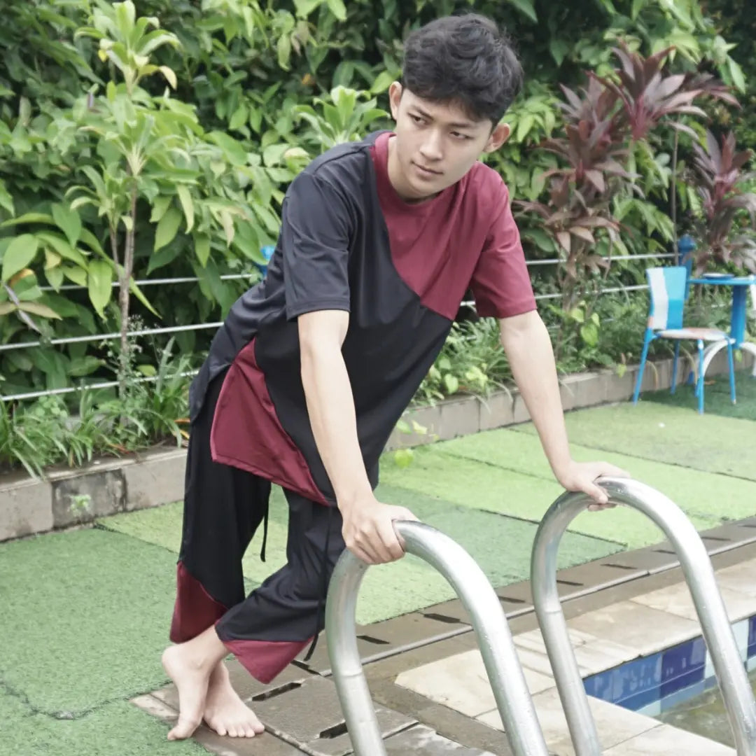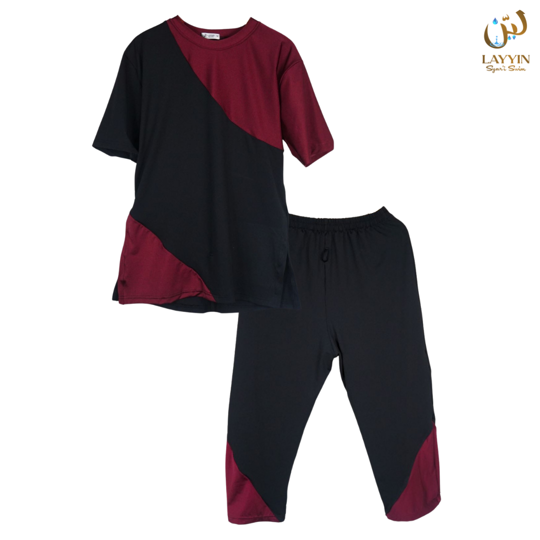 1 Modest Swim Top (with your preferred sleeve length) + 1 Pair of High-Waisted Swim Pants.