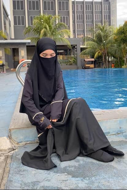 ✅ Standard – Made from thick premium spandex polyester. Safer than nylon lycra when wet (less clinging), but may slightly stick to the body. Tip: Adjust the hijab slightly forward before exiting the pool to avoid outlining.